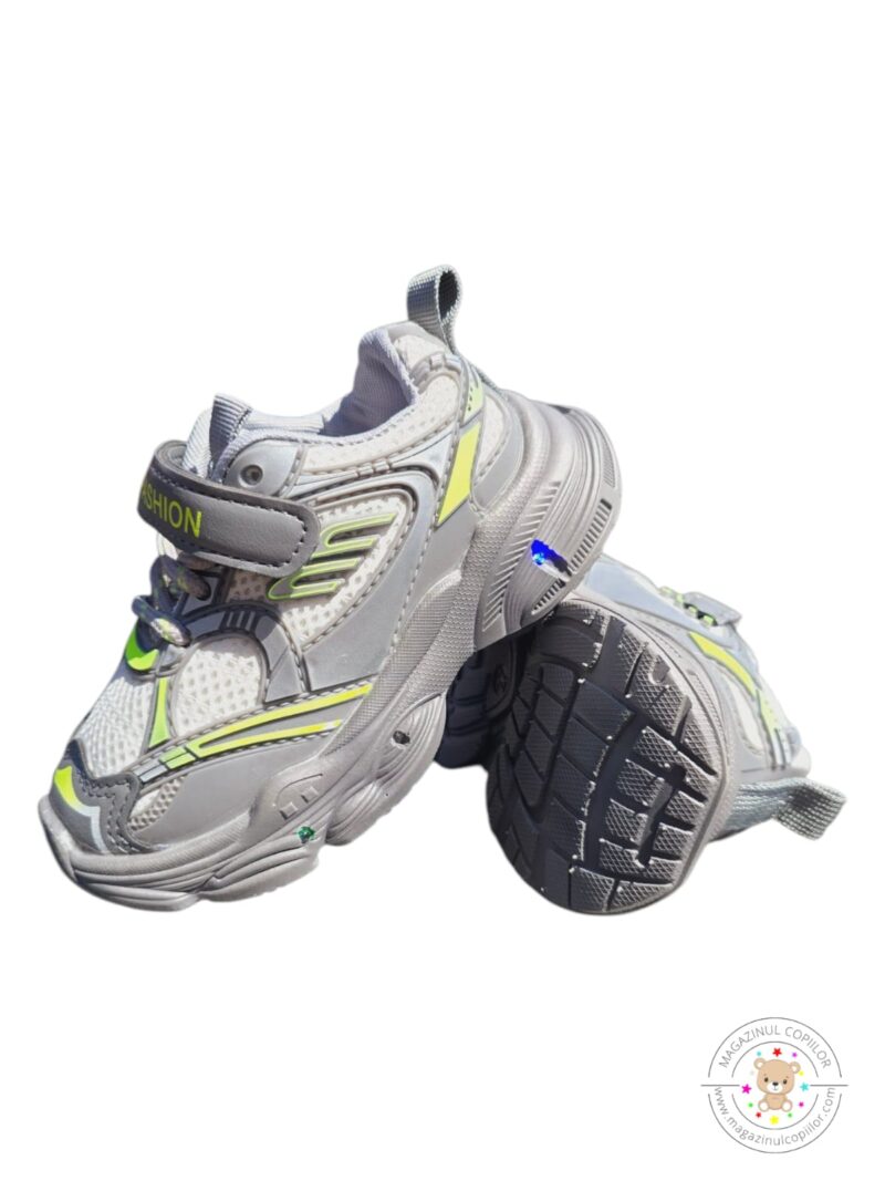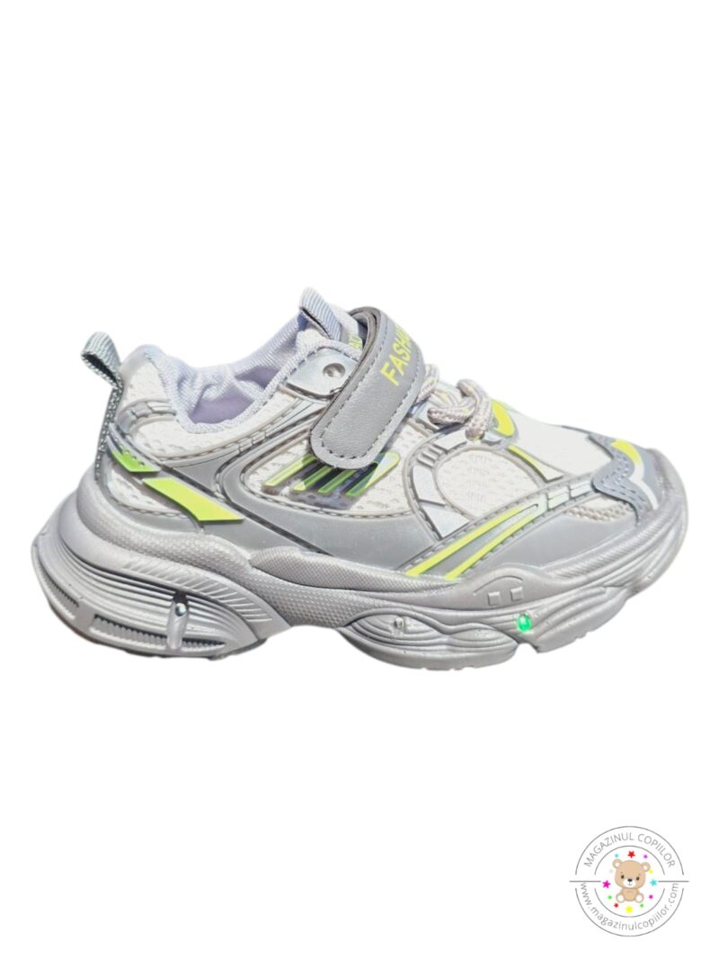 Adidași cu luminițe din material textil, talpă de spumă foarte ușoară și flexibilă, închidere cu arici