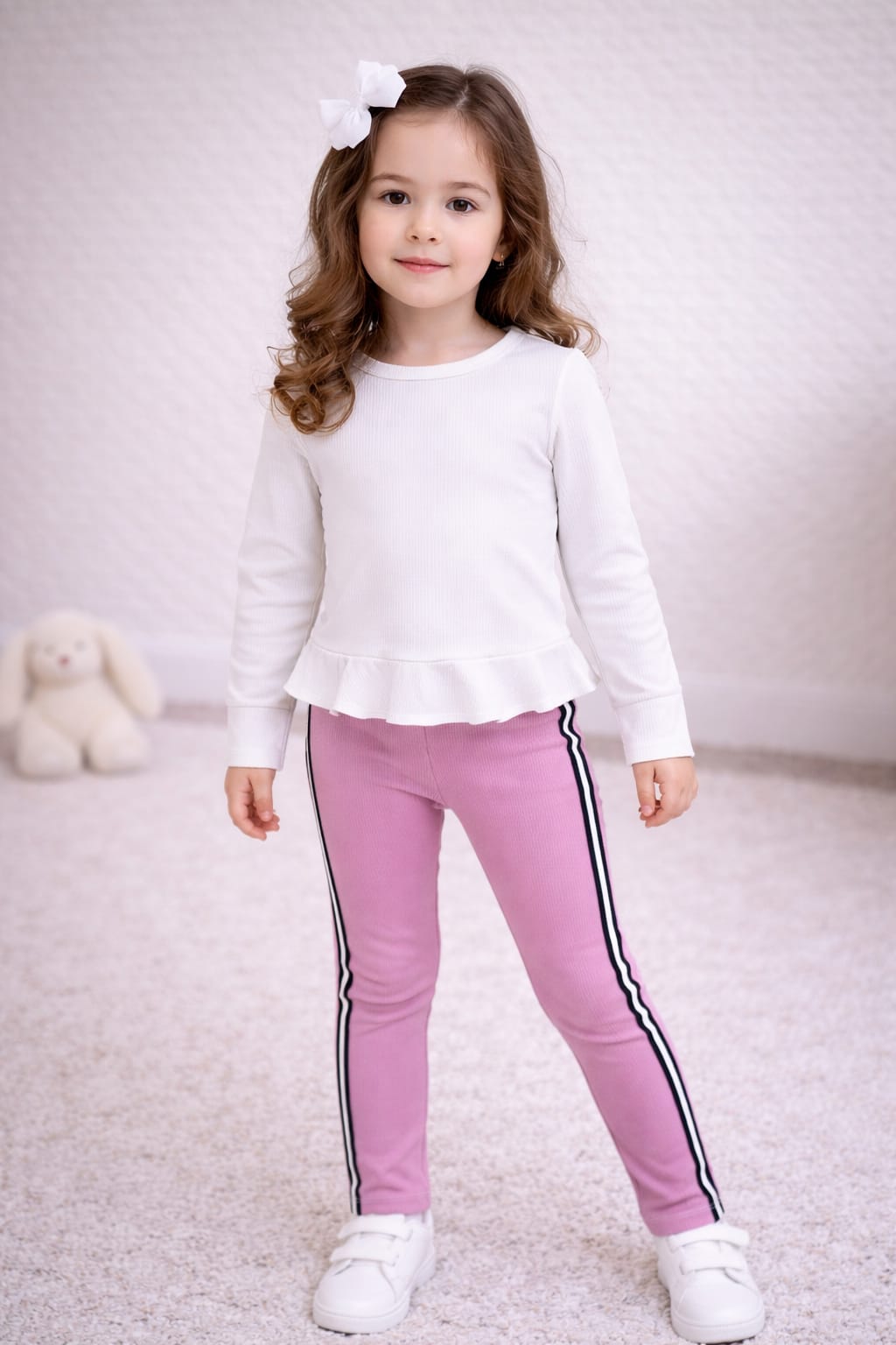 Colanți moderni pentru fetițe, de culoare roz, cu dungi laterale sportive. Realizați din material elastic și confortabil, oferă libertate de mișcare și sunt ideali pentru joacă, grădiniță sau ținute casual de zi cu zi. 💗