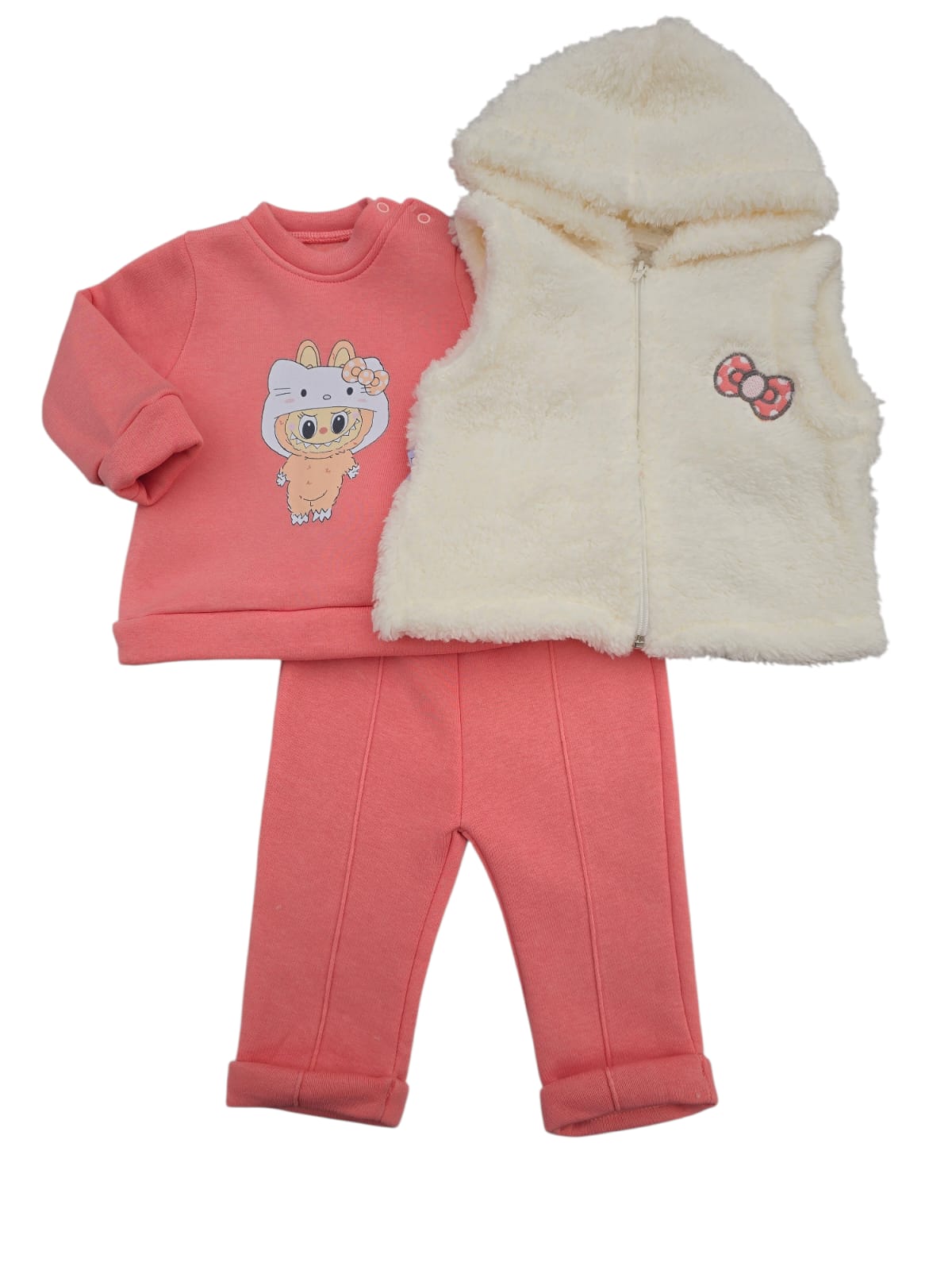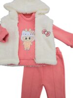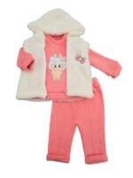 -20%Costum vătuit 3 piese: format din bluză cu imprimeu simpatic, pantaloni comozi și vestă călduroasă cu glugă. Realizat din material moale și plăcut la atingere, ideal pentru sezonul rece și purtare zilnică.