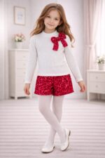 Costum 2 piese: bluzită din catifea și pantaloni scurți cu paiete