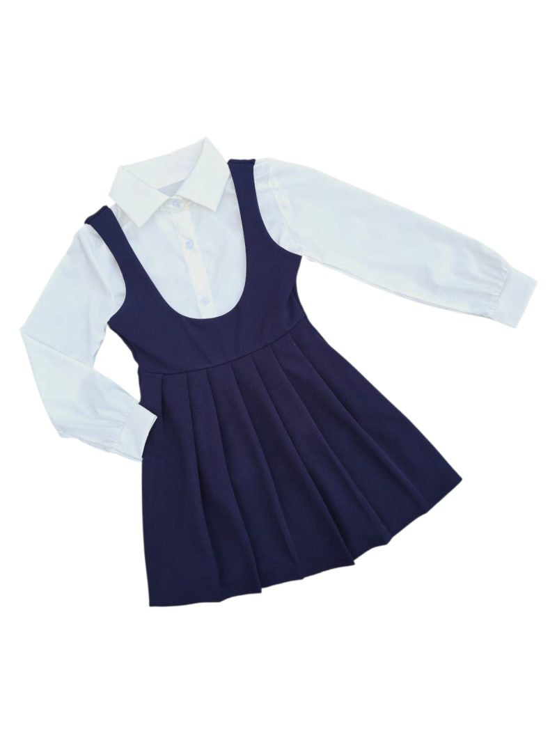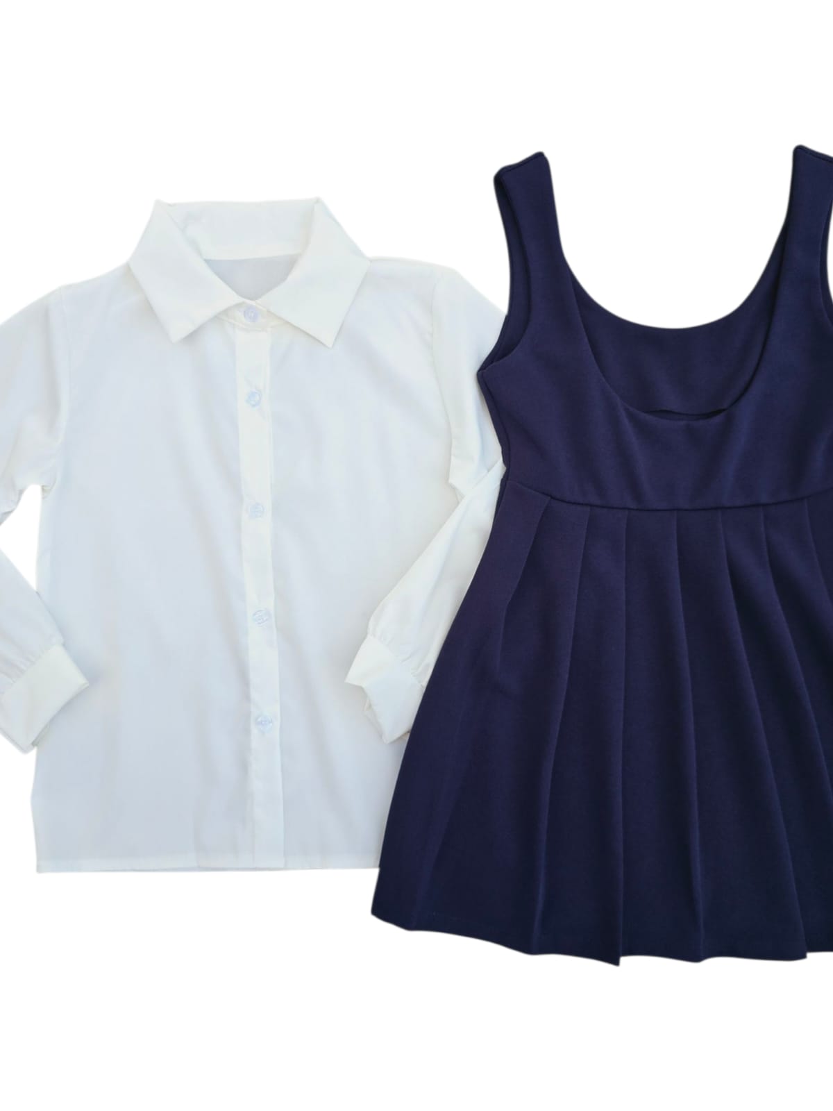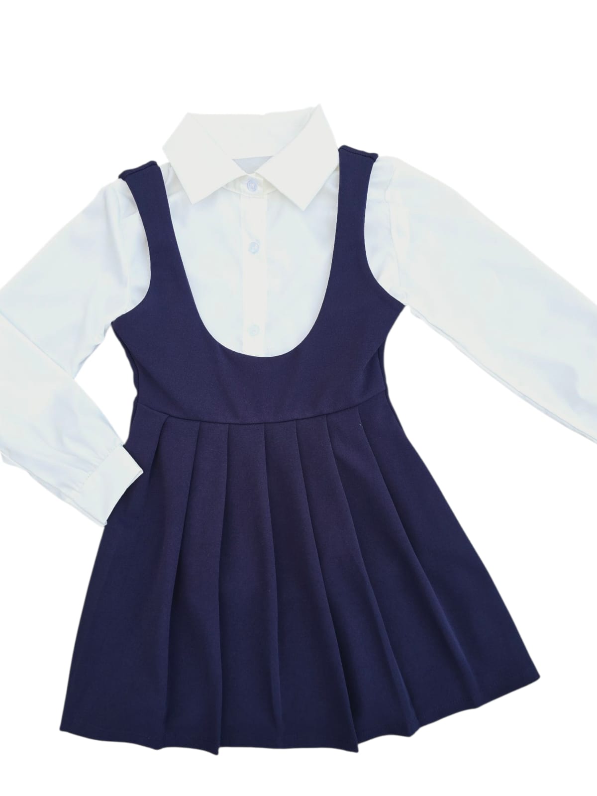 Sarafan bleumarin și cămașă cu mânecă lungă Fabricat în Italia