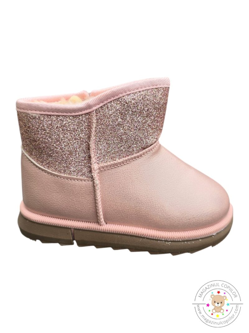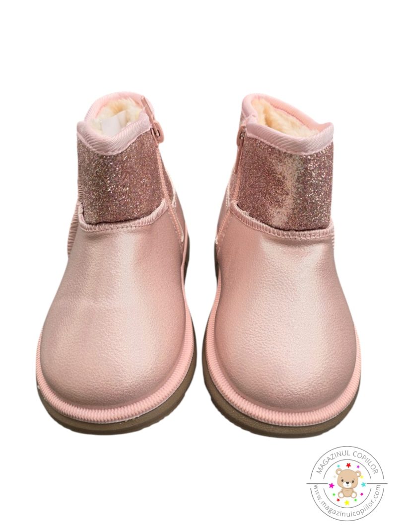 -20%Ghete din piele ecologică, căptușite pe interior cu blană, talpă flexibilă antiaderentă, închidere cu fermoar