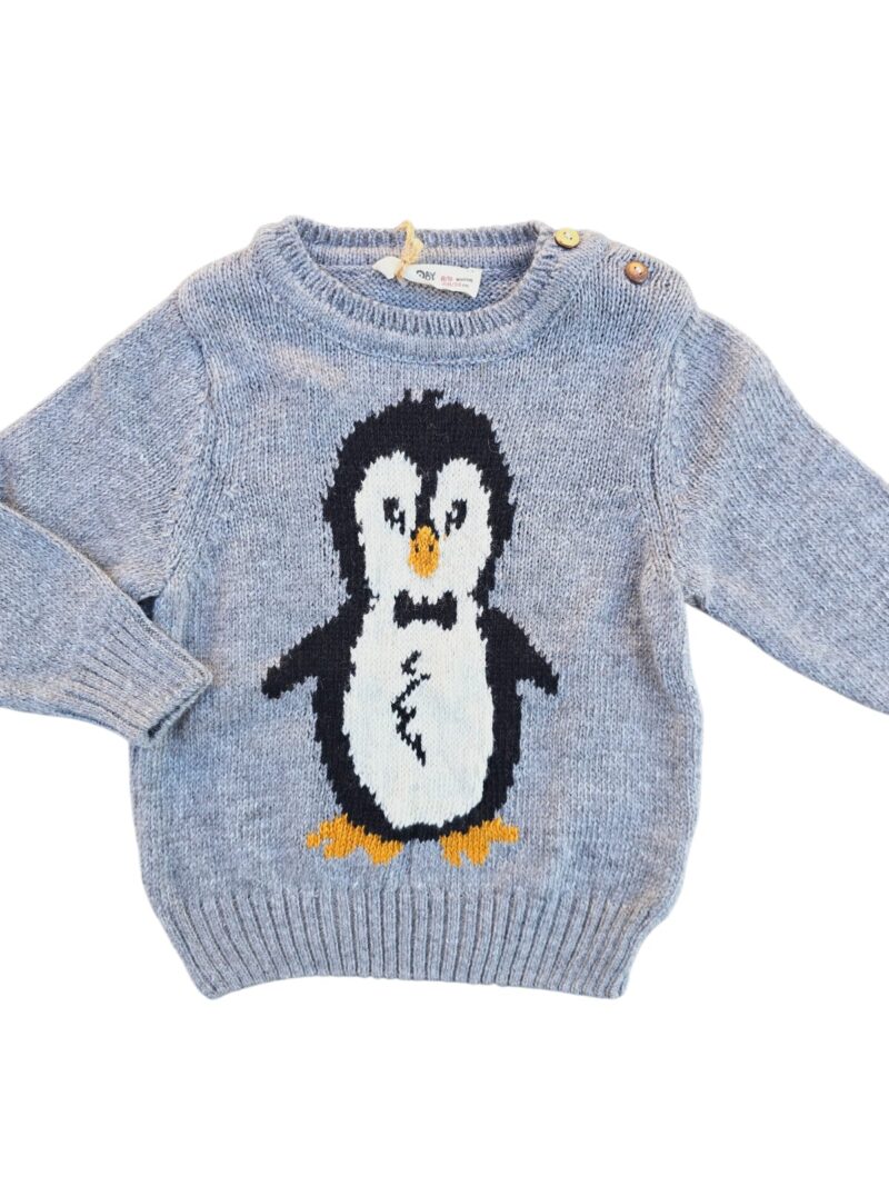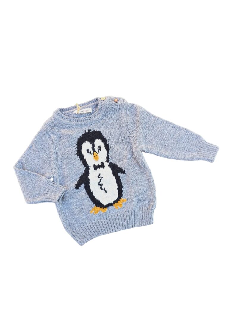 -20%Pulover călduros pentru copii, realizat din material PNA, moale și plăcut la purtare. Decorat cu pinguin simpatic și prevăzut cu nasturi pe umăr pentru îmbrăcare ușoară. Ideal pentru sezonul rece ❄️🧸
