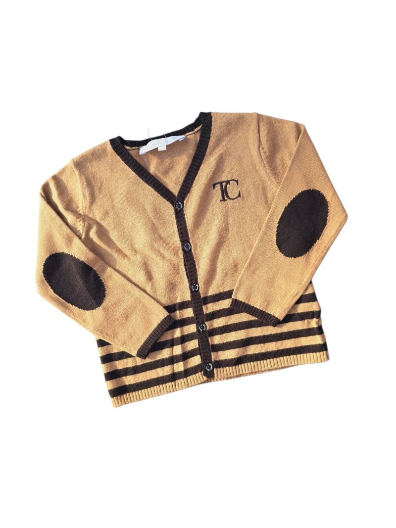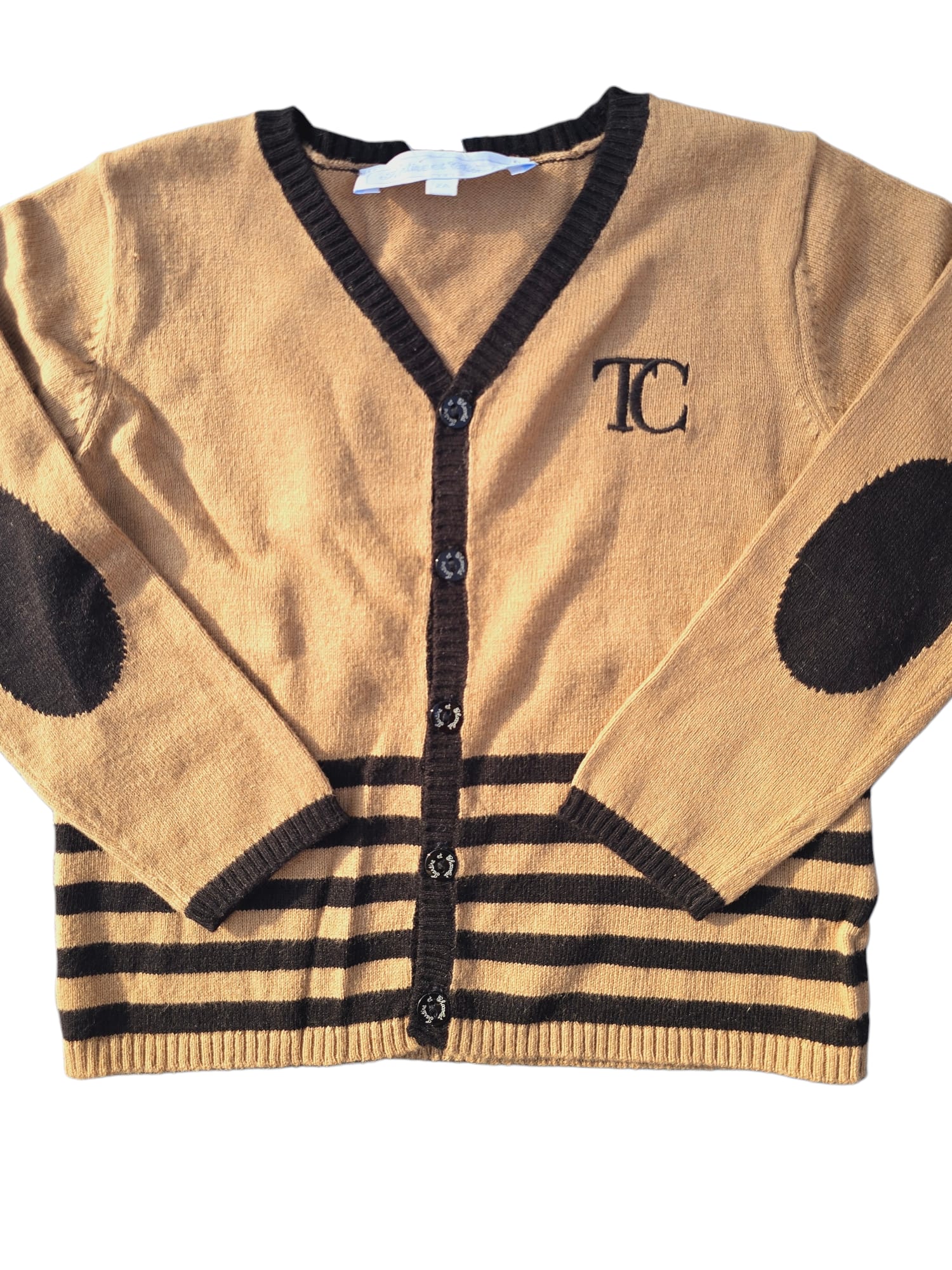 Pulover pentru băieți, realizat din tricot moale și plăcut la atingere, cu guler în V și aplicație „TC” pe piept. Designul simplu, cu detalii contrastante, îl face ușor de asortat și potrivit pentru ținute de zi cu zi, oferind confort și libertate de mișcare.