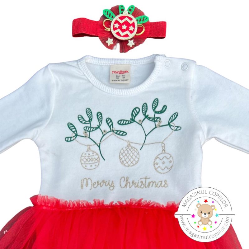 Rochiță de Crăciun cu globuri albă