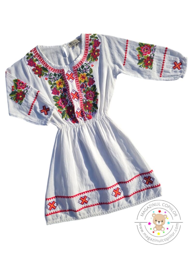 Rochiță brodată cu motive tradiționale Material: 100% Bumbac Fabricat în România