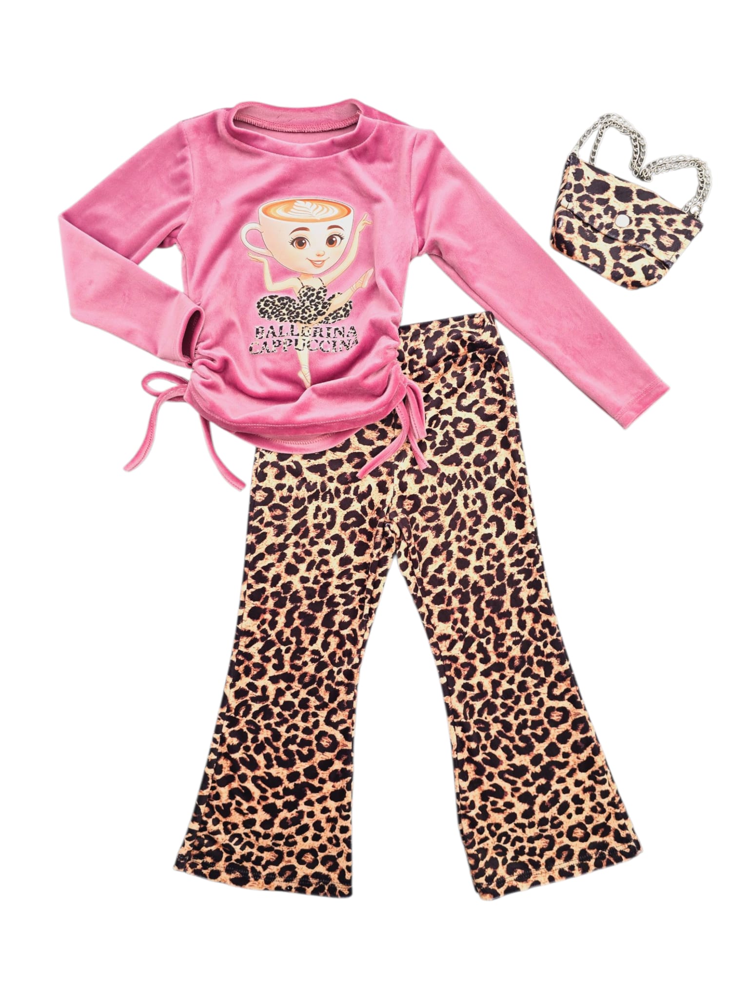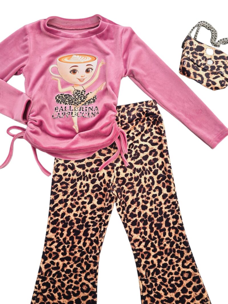 -20%Costum catifea 3 piese: bluziță cu mânecă lungă, pantaloni evazați și